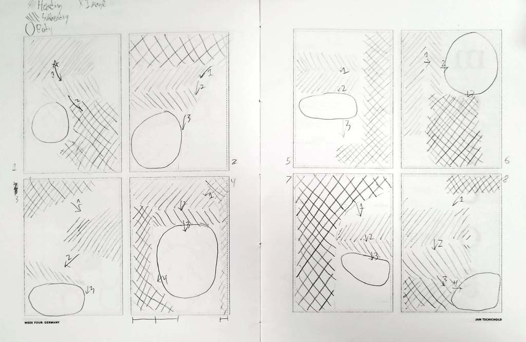 For today’s entry, I took the layouts from my first Switzerland post and applied some of Jan Tschichold’s design philosophies into them. These philosophies include the employment of asymmetry, contrast, and scale. For this exercise, I took the previously mentioned layouts and made them a bit more asymmetrical. This was done in a number of ways. For example, on number two, a curve was added to the design, which not only improved that asymmetry point but added a sense of motion to the design. Conversely, on design three, a zig-zag pattern was added, which added a fun amount of motion between the established hierarchy. Overall, Tschichold’s principles of design really help to a noticeable extent with composition. The idea of using scale to define hierarchy is extremely important in this series of designs and became a key aspect of all of these pieces. This property would help to more effectively communicate the point of each design. In the end, Tschichold’s designs make a point of typography being responsive, the design flexing around rules in order to serve the intended purpose of the design, and if these designs below were filled out I believe they would achieve this purpose.